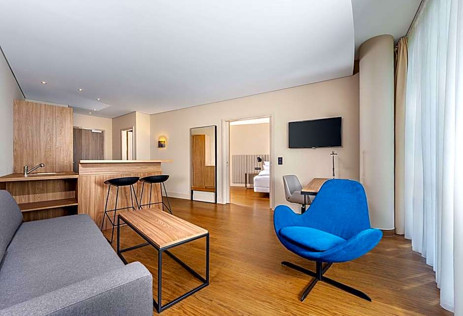 The air-conditioned suite features 1 bedroom and 1 bathroom with a bath and a hairdryer. The kitchenette comes with a refrigerator and a microwave. The suite has parquet floors, a seating area with a flat-screen TV with satellite channels, soundproof walls, a tea and coffee maker, as well as a wardrobe. The unit offers 2 beds.